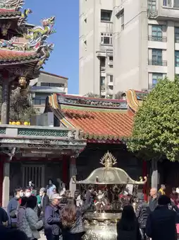 Entering Longshan Temple, the courtyard filled with incense smoke and the sight of people praying create a calming atmosphere. The ornate decorations and solemn ambiance add depth to your travel experience. 🕯️🙏🌿