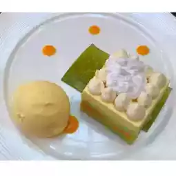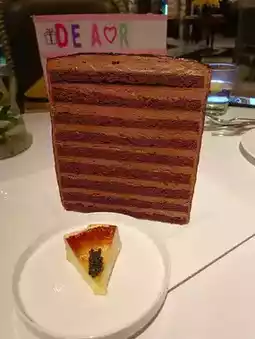 We accidentally ordered the caviar Basque cheesecake, which turned out to be quite tasty. Later, we added the pistachio snow mountain lava cake, which was surprisingly delicious!