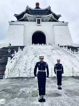 The Chiang Kai-shek Memorial Hall, located in Taipei's Zhongzheng District, is a commemorative building dedicated to former President Chiang Kai-shek of the Republic of China. It is also one of Taipei's most famous landmarks. Designed in the style of a traditional Chinese palace, the memorial hall features a golden-tiled roof and an elegant blue-and-white color scheme. Surrounded by spacious plazas and greenery, it provides a relaxing space for citizens to stroll and unwind. Inside, the hall showcases Chiang Kai-shek's life and historical records, along with preserved artifacts and photographs. A daily changing of the guard ceremony at the top of each hour is a highlight for visitors to photograph and enjoy. Additionally, the plaza and pathways of the Chiang Kai-shek Memorial Park are ideal for jogging, walking, or admiring the surrounding urban scenery, blending historical significance with leisure activities.