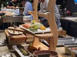 The "Island Language Buffet" at Nangang Hanlai Hotel opens its dinner service at 5:30 PM, allowing guests to enter gradually. The dining process is smooth, with food being served quickly. Most food stations require only one to two minutes of waiting, except for freshly made hand rolls, which take longer as they are prepared individually by chefs. However, by around 6:30 PM, the queues almost disappear, allowing diners to enjoy their meals more leisurely until 9:00 PM, providing ample time for dining.