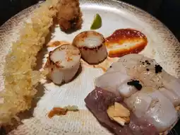 The buffet offers an impressive variety of dishes, with seafood being particularly outstanding. The assorted sashimi is fresh and delicate, the scallops are sweet and plump, and the grilled oysters and snails are full of flavor. The large shrimp and fried shrimp are must-try favorites. Notably, the king crab soup and wine-steamed clams are exceptional, with their savory broth leaving a lasting impression. For meat lovers, the ribeye steak is perfectly seared on the outside and tender inside, served in generous portions and complemented by various dishes for a satisfying experience. Don't miss the dessert section, especially the Gelato, which is smooth and refreshing, providing a perfect ending to the meal.