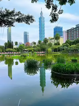 🏖️ Atmosphere/Facilities: Statue, Green Lake, walking trails, shade trees, Taipei 101 view