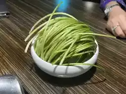 I ordered the Healthy Hot Pot, a stew of Chinese medicinal herbs that offers a refreshing sweetness without being heavy, perfect for dipping meat or seafood. My friends at another table ordered spicy hot pot and shared some with me. The spiciness was fragrant but not overpowering, and it was a perfect match with the duck blood.