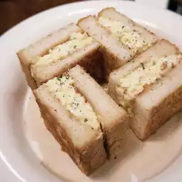 The crispy milk toast is perfectly grilled and stuffed with a generous amount of egg salad. It's crispy yet soft, refreshing, and has a great layered texture!