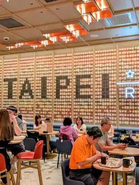 Five themed spaces—the Mixology Bar, the Teavana™ Bar, the Roastery, the Siren’s Lounge Premium Experience Zone, and the immersive Coffee Experience Room—allow you to experience the endless possibilities of coffee in one place. Whether it's limited-edition coffee martinis, Taiwanese-style teas, or Goddess series merchandise and city mugs, this place is worth collecting. Stepping into the "Mountain Seating Area" feels like being immersed in a natural forest setting, and looking up offers a night view of Taipei 101. It's a must-see for coffee lovers and hipsters.