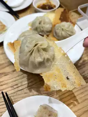 These xiao long bao have thin dough, juicy broth, and a crispy base. Absolutely delicious! We highly recommend ordering them; every table will have one! ✨