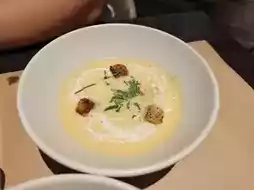 Both soups were delicious, but the seafood chowder had a richer flavor profile, with ingredients like fish, shrimp, and clams. The soups also came with toasted croutons, adding a nice crunch.