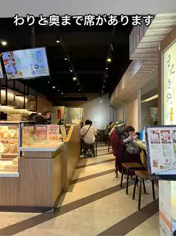 The shop is long and narrow, with plenty of counter seating for one person along the wall, and a four-person table in the back.