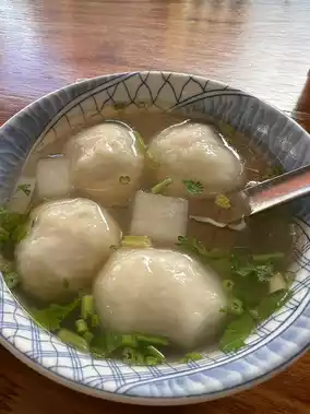 They offer soup with fish balls and winter melon, soup with squid and winter melon, and a soup with both.
