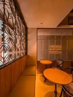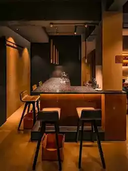The space is styled with warm wood and soft amber lighting, giving it a refined atmosphere 👀. Crafted by Taiwanese artisans, the window panels hide delicate motifs of coffee beans and pour-over kettles 🫘🫖. The long interior draws focus to the central open bar counter 🤩. Ten varieties of coffee beans — from light to dark roast — are neatly displayed on the table 🧐. Guests can smell each one before deciding which to use for pour-over or other brewing methods 👃🏻.
