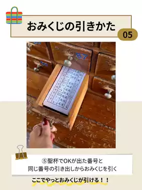 ⑤ Draw a fortune slip from the drawer with the same number as the "Holy Grail" that got the OK.