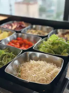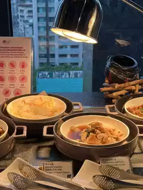 While the menu isn't large, it includes hot dishes, fruit, salads, coffee, juice, and more. For an additional NT$99, you can get all-you-can-drink beer, red wine, and white wine. Start drinking early in the morning. It's pure vacation ambiance! The Chinese breakfast also features a rare #peeledchili pepper dish.