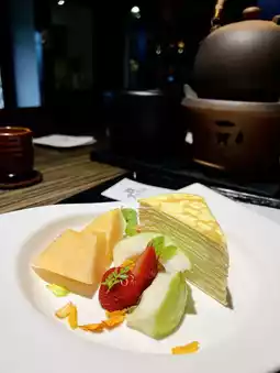 Finally, fresh fruit and dessert. Dessert is a layer cake, each layer is full of cream, smooth and not too sweet.