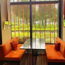 Different time periods bring people different feelings and atmospheres. In the afternoon, you can feel the comfortable and bright natural light shining through the room, and you can also see the street view and greenery outside when sitting in front of the window. At night, there is a lounge bar atmosphere, a kind of urban fashion and relaxing feeling.