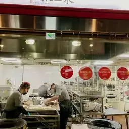 This restaurant really has a long queue all the time. It is very famous in Taipei. The prices are slightly higher, and the order is taken quickly. You can see the chef busy making the food through the glass window.