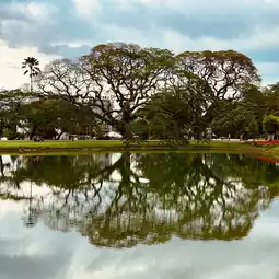 As the world’s first **tropical lake garden** (1880), this 64-hectare wonder becomes a **cool emerald paradise** at daybreak, when morning mist clings to century-old rain trees and silvered langurs sip dew from lotus leaves.