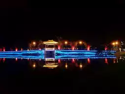 The gardens comprise West Lake, South Lake, Jungle Lake and a number of smaller lakes, ponds and islands linked by footpaths and decorative bridges. At night some of the bridges are colourfully illuminated.
