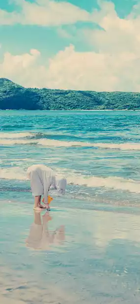 • Capture dynamic moments: In scenes such as beaches and seas, capture the moments when people run, play in the water, and chase the waves to show vitality.