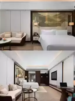 The European-style lobby makes you feel like you've stepped into a palace in Europe—every corner is Instagram-worthy 📸. The rooms are spacious and bright, with ultra-comfy bedding, smart toilets, smart curtains, and a large scenic balcony. Enjoying the night breeze and city views in the evening is pure bliss~