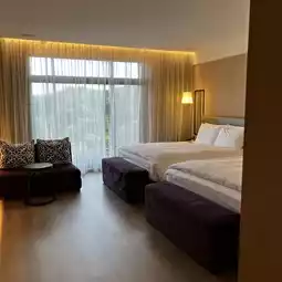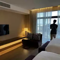 I stayed in a quadruple room, which was very spacious and clean. It had two extra large double beds and a bathtub, as well as a balcony with a view of the Taitung City street view. It was a pity that there was no socket next to the bed. There is an infinity pool on the rooftop, which is very beautiful when the sun shines on it. You can also see the Taitung sea view on the other side. The whole atmosphere is very good. The breakfast is quite ordinary, but there is beef noodles which is pretty good.