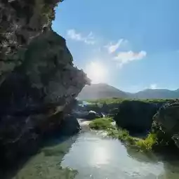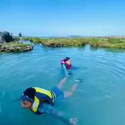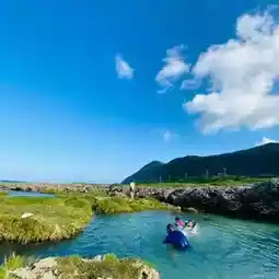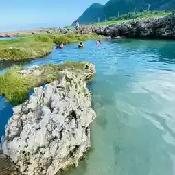 There are coral reefs here that slightly separate the cold spring from the sea, so it is very suitable for children to play in the water. The water in the cold spring is not deep and clear enough to see the bottom. While playing in the water, you can also see small fish swimming nearby. So the kids really love playing in the water and have a lot of fun here, and it’s super comfortable to soak in the cold springs when the weather is hot.
