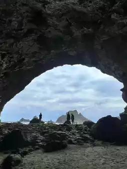 After arriving at Yuzihu, you need to walk about 200 meters along a sandy trail to reach Bow Cave. Along the way, you can enjoy the unique volcanic rock formations. Inside Bow Cave, you'll find a cool and distinctive natural landscape, earning it nicknames like "Blue Eye" and "Lover's Cave"! This is a must-visit hidden gem when traveling to Green Island!