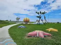 The Taitung Seaside Park International Landmark is located at the end of Datong Road in Taitung City. The park features cultural-themed trails, a theater, a plaza, oceanic animal landscapes, and public art installations. Walking along the trails, visitors can enjoy the boundless Pacific Ocean view, and on clear days, even catch a glimpse of Green Island and Orchid Island. It’s a great spot for tourists and local residents to relax and unwind. Additionally, the park occasionally hosts music and art performances, allowing visitors to immerse themselves in the enchanting melody created by the fusion of music and the sound of ocean waves against the backdrop of the blue horizon. This park beautifully combines elements of humanity, the sea, and cultural arts.