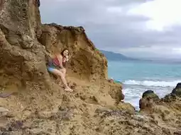 Legend says three immortals once set foot here—now visitors cross the wave-like bridge to explore the island’s volcanic rock formations, sea caves, and coral reefs 🌋🪸.Most of the beach was covered in sea-smoothed volcanic pebbles.