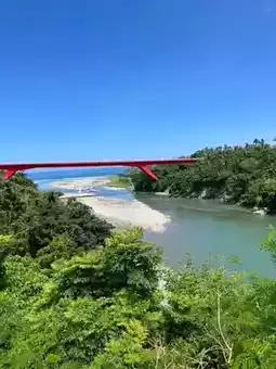 Standing at the center of the bridge, looking upstream reveals a tranquil valley embraced by lush greenery, with crystal-clear waters meandering through. Looking downstream, the river rushes toward the Pacific Ocean, where the horizon stretches endlessly. In the early morning, mist drifts over the river, resembling a delicate ink painting, while in the afternoon, sunlight bathes the bridge and water in a warm glow.