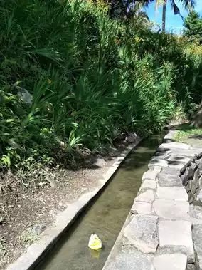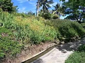 We often say that people should strive for higher places, meaning they should strive upward, rather than being like water, which, without effort, will sink downward. However, this saying is completely contradicted at the Water Flows Upward Recreation Area. Located along Provincial Highway 11 in Donghe Township, Taitung County, this area, close to the main road, is a popular rest stop for tourists. Originally an agricultural irrigation ditch, it gained fame due to the slight inclination of the terrain, which creates the illusion that the water is flowing upward. Beside the ditch stands a stone inscribed with the words "Wonder" and a brief description. The entire park is not very large, and most visitors stop by to rest, though some come specifically to witness this unnatural phenomenon of water flowing upward. If you're visiting Donghe, stop by to relax and take a break, while also taking in this so-called "wonder" of water flowing upward.