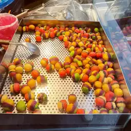 This just opened this 94 sweet potato balls are colored oh And here are natural dragon fruit sweet potato butterfly pea flower bamboo toner matcha powder used oh each each color sweet potato balls are cartoon character color scheme oh super cute tasty and very interesting
