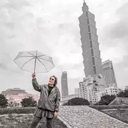 When we come to visit, we must find an action angle for kids. I must say that this angle is searched on social media and found because it is an angle where you can see the entire 101 building and has a village atmosphere with a small grass hill for taking pictures. There are many cool angles for us to take action. I must say that this is the place. We call it the old military village. It is no more than 300 meters from the train station at 101. This is an angle and a point where you can take very beautiful pictures. I would like to show my full picture. I must say that this is an example of action for everyone. I will tell you that it did not rain that day, but I secretly brought an umbrella because I knew it would make me look cool. Try it. Opportunities like this do not come often. Prepare whatever you can. Take action shots with cool buildings. It is an impressive experience that is once in a lifetime in Taiwan. #TaiwanTravel #KennyAnneJourney #FatAnneCheckIn #SecretLocation