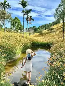 A trip to Taiwan's **赤柯山 (Chi Koo Shan)** to see the **Golden Tulip Sea** in autumn was a wonderful experience full of bright colors🍂. The golden flowers cover the entire hillside, forming an eye-catching natural landscape. The scenery of the wide fields decorated with flowers under the clear sky was very charming, with the warm colors of the flowers blending with the surrounding nature🍁.
