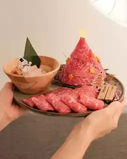 From the soup to the ingredients, the store carefully selects fresh ingredients. This time we tried the December limited Christmas set menu, priced at $2,480, which includes American prime wing fillet or Iberian pork (180 grams, choose one), golden chicken (120 grams), seafood platter (2 grass shrimps, 2 abalones, 6 clams, 2 scallops), 2 appetizers, 2 vegetable plates, and a special dessert: cantaloupe ice cream sprinkled with berries.