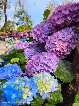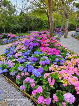 🌸 The exhibition area is open from 2/22 to 3/31, and you are invited to enjoy the beautiful spring scenery! More than 2,000 hydrangeas of six varieties have been carefully planted in the park, and 70% of them are currently in bloom, forming a romantic and colorful sea of flowers.