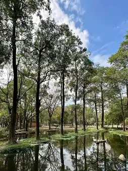 You’ll find wooden walkways, little ponds, and grassy areas that are perfect for just chilling or taking a casual stroll. It’s a nice break from the busy parts of the city and a great spot to catch your breath or enjoy a sunset. There are also birds and small animals around, so it’s cool for nature lovers or anyone who just wants to take it slow.