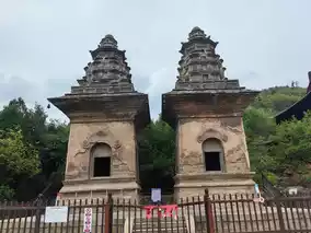 I had some extra time after returning to Taiyuan, so I visited Meng Mountain. There weren't many people, most likely locals from Taiyuan out for a suburban trip. Inside, there were many amusement facilities targeted at children. Climbing the big Buddha wasn't too difficult; it's older than the one in Leshan, but it must have been renovated in recent times as it doesn't show signs of aging. The main iron Buddha is covered in rust, but a row of smaller Buddha statues is quite interesting, as if they are playfully amusing visitors. The Song dynasty's Lianli Pagoda, I wonder if it got its clever name because it appears in pairs.