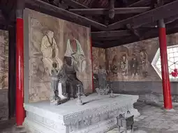 [Shrine] In front of the gate there is a three-story wooden archway with four pillars, which has a unique shape and color. It is a building with distinct Taoist architectural features and is worthy of being a national key cultural relic protection unit. It provides an important reference for the study of Chinese Taoist architecture and Taoist culture. Now it is the Shanxi Ancient Architecture Museum, which displays and explains ancient architecture knowledge.