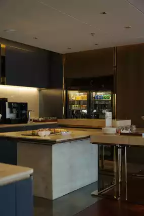 The high-altitude executive lounge on the 21st floor is not only private, but also has an open view.