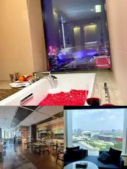 The building exterior looks very old - hard to believe it's a 2018 hotel. No view or scenery except for a construction site. However, the room facilities are quite modern - screen casting available, controllable curtains, and the signature comfortable InterContinental bedding. The two sofas are decent. The bathtub is a bit difficult to use. Cleanliness is just average. Overall passing grade.
