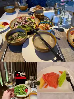 Breakfast is decent, especially after returning from Tokyo - the comparison makes it seem incredibly good. They have knife-cut noodles (delicious), large meat dumplings (delicious), and freshly made jianbing (not good). The baked goods are fine, though the pastries seem to use the wrong butter. The fruit selection is lacking with only two types, and just one type of freshly squeezed juice. Considering the price point, I think it's adequate.
