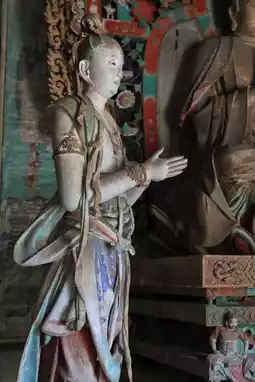 Duofu Temple was originally built in the Tang Dynasty and renovated in the Ming Dynasty. The existing statues in the Mahavira Hall are Ming Dynasty masterpieces. The most remarkable are the attendant Bodhisattvas: