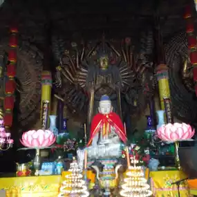 "Chongshan Temple" is the only historical site in the center of Taiyuan... It is the headquarters of the Shanxi Provincial Buddhist Association and was founded in the Tang Dynasty. Now, only the "Great Compassion Hall" remains, and it is said to be in the Ming Dynasty architectural style. The vermilion color is very beautiful, and the wooden architecture is detailed, so even an amateur can see how wonderful it is. The "Great Compassion Hall" enshrines the Thousand-Armed Thousand-Eyed Kannon, which is 8.5 meters tall and has a thousand eyes and 11 faces. It is impressive, yet intricately detailed, and is truly wonderful. In Taiyuan, where modernization is progressing, "Chongshan Temple" is a valuable historical site.