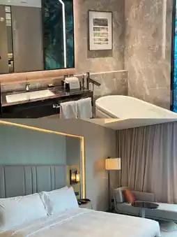 The hotel's design is modern and elegant, the rooms are spacious and comfortable, and equipped with modern facilities such as floor-to-ceiling windows, walk-in cloakrooms, separate bathing and washing spaces, and a wide range of pillow choices to ensure guests have a high-quality accommodation experience.