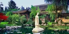 Wandering in the garden, the scattered and orderly pavilions and waterside pavilions are eye-catching, and the elegant and majestic white marble statue of Mei Lanfang displays the master's extraordinary demeanor. The statue in the middle of the pool outside the exhibition hall represents the artistic image of Yang Taizhen, whom the master portrayed in 'The Legend of Lady Yang.' In the garden, there is a Mei Lanfang historical exhibition hall, which displays Mei Lanfang's life and the costumes and props he used. Here, one can learn in detail about the master's operatic life, and feel his artistic sentiment and patriotic feelings.