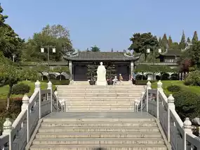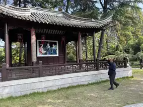 Entering Mei Garden, you are greeted by a large bust of Mr. Mei carved from white marble. In front of the bust is the Mei Lanfang Historical Exhibition Hall, a building with gray bricks, brown tiles, and upturned eaves. Inside, photos and artifacts from the master's life are displayed. In the back garden, there are rockeries, flowing water, pavilions, and an imitation ancient opera stage. The pentagonal pavilion on the west side of the stage is the "Mei Lanfang Memorial Pavilion," built in a typical Jiangnan garden style. Many plum trees are planted in the garden, dense and lush. Although the plum blossom season is over, you can almost still smell the fragrance of plum blossoms.