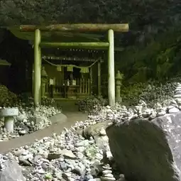 To get to Tenyasu Riverside, follow the signs near Nishihongu Shrine of Amano Iwato Shrine and walk into the small path. Then walk through the valley forest trail for about 15 minutes to reach a riverside cave. There is an island house and a small shrine in the cave. The light in the cave is dim, the air is humid and full of mystery. This is Tenyasu Riverside. The ground and the big rocks in the river are covered with countless small stone piles, which are piled up by tourists for prayers. When you leave, you can visit the Nishihongu Shrine of Amano-Iwato Shrine and have a bite to eat at a nearby roadside cafe.