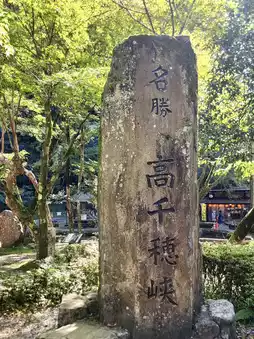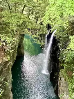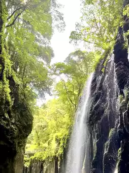 The main features of Takachiho Gorge include its turquoise river water and multiple waterfalls, the most famous of which is "Manai Falls", which is about 17 meters high and is one of Japan's top 100 waterfalls. Visitors can walk along the trails of the canyon to enjoy various natural landscapes, or rent a boat to experience the spectacular waterfalls up close.