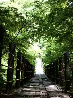 [Ibaraki] A beautiful suspension bridge surrounded by lush green maples