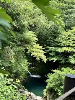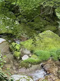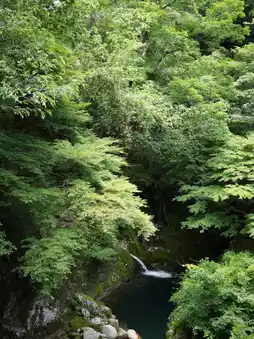 From Kotakizawa Campsite along the valley, the view near Shiomitaki Suspension Bridge is spectacular